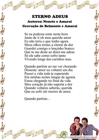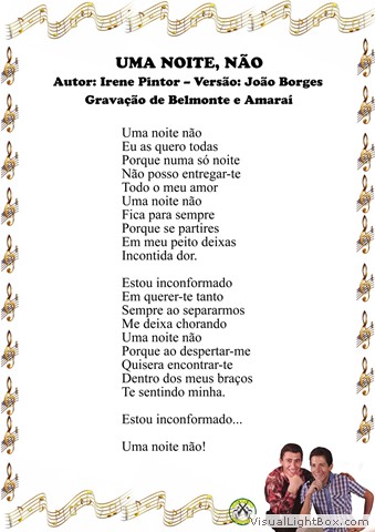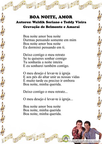 01) Boa Noite, Amor - Waldik Soriano e Teddy Vieira 02) Morrendo de Amor - Maximino Parizze e Canarinho 03) Terra Querida - Nenete e Francisco Lacerda 04) A Fronha - Belmonte e Anacleto Rosas Jr. 05) Saudade de Goiás - Goiá e Amaraí 06) Capricho do Destino - Junqueira 07) Quero Esquecer - Belmonte e Cambará 08) Tão Somente uma Vez - Augostin Lara e Waldomiro Hortêncio 09) Incompreensão - Sebastião Víctor 10) Eterno Adeus - Nenete e Amaraí 11) Teu Adeus - Benedito Seviero e Luiz de Castro 12) Perdido de Amor - Piragí e Amaraí 13) Quando o Destino - J. Alfredo Gimenez - Versão: Arlindo Pinto
