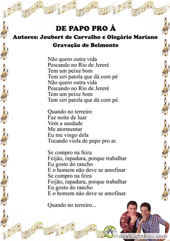 01) O Menino da Porteira - Teddy Vieira e Luizinho 02) Divino Espírito Santo - Canhotinho e Torrinha 03) De Papo P'ro Á - Jubert de Carvalho e Olegário Mariano 04) Do Lado que o Vento Vai - Raul Tôrres 05) Piracicaba - Newton de A. Mello 06) Ferreirinha na Viola - Recolhida por Rossini Tavares de Lima 07) Negrinho do Pastoreio - L. C. Barbosa Lessa 08) Boiadeiro - Armando Cavalcanti e Klecius Caldas 09) Chuá-Chuá - Pedro de Sá Pereira e Ary Pavão 10) Maringá - Joubert de Carvalho 11) Prelúdio Sertanejo - Nonô Basílio 12) Chitãozinho e Chororó - Serrinha e Athos Campos