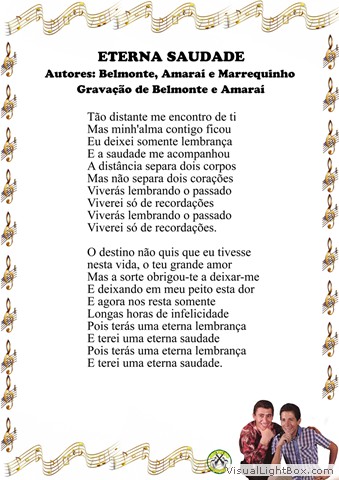 01) Saudade de Minha Terra - Belmonte e Goiá 02) Morrendo de Amor - Maximino Parizze e Canarinho 03) Mercedita - Ramon S. Rios - Versão: Belmonte 04) A Andorinha - Biá e João Borges 05) Pombinha Mensageira - Belmonte e Junqueira 06) Morena Cheirosa - Nenete e Dorinho 07) A Fronha - Belmonte e Anacleto Rosas Jr. 08) Desde que Te Vi - Luiz Behamonde - Versão: Belmonte 09) Saudade de Goiás - Goiá e Amaraí 10) Sei que Te Perdi - M. C. Ocampo - Versão: J. Bragato 11) Eterno Adeus - Nenete e Amaraí 12) Lágrimas da Alma - Bony Villaseñor - Versão: J. K. Filho 13) Quero Esquecer - Belmonte e Cambará 14) Terra Querida - Nenete e Francisco Lacerda