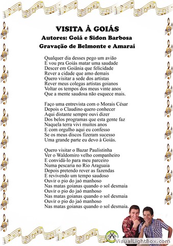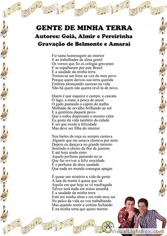 01) Gente de Minha Terra - Goiá, Almir e Pereirinha 02) Faz Um Ano - Miltinho Rodrigues 03) Visita à Goiás - Goiá e Sidon Barbosa 04) Cavalo Branco - José A. Jimenez - Versão: José Fortuna 05) Presença de Deus - Julião Saturno e Belmonte 06) Meu Pequeno Cachoeiro - Raul Sampaio 07) Cavalo Preto Valente - Belmonte e Miltinho 08) Adeus, Mariquita Linda - Marcos A Gimenez - Versão: Francisco Ávila 09) Do Mundo Nada Se Leva - Belmonte e Jorge Paulo 10) Carreta da Fronteira - Diosnel Chase e M. C. Ocampo - Versão: Palmeira 11) Só Me Resta Esquecer - Amaraí e Piragí 12) Por Ser Vagabundo - Ernesto Juarez - Versão: Miltinho Rodrigues