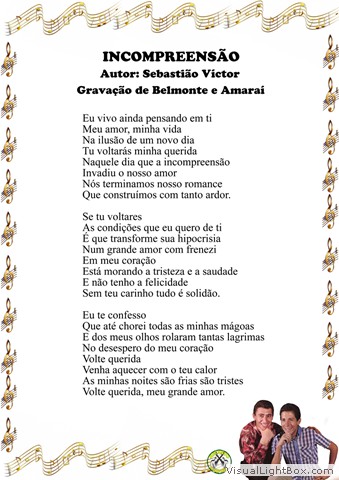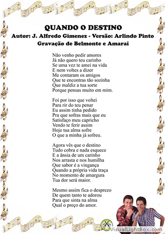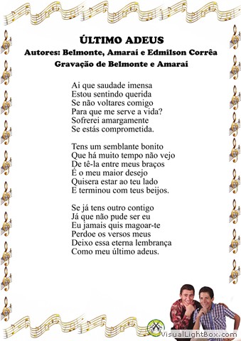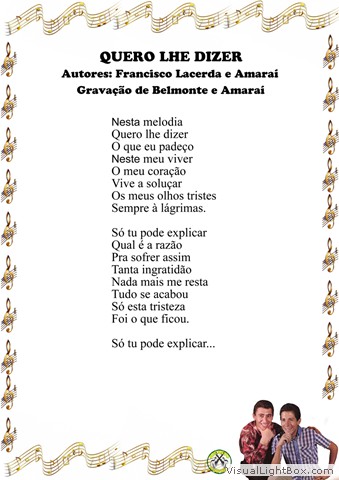 01) Quando Voltarás - Belmonte e J. Garcia 02) Seu Adeus, é Motivo de Meu Pranto - Jacó e Jacozinho 03) Me Equiivoquei Contigo - J. A Gimenes - Versão: W. S. Dantas 04) Exaltação à Minha Terra - Luiz de Castro 05) Mãezinha Escreva-me - Miltinho 06) Moreninha Encantadora - Belmonte e Felisbino 07) Faz Um Ano - Miltinho 08) Da Vida Nada se Leva - Belmonte 09) Oração à Minha Amada - E. Martines E . A Baez - Versão: Belmonte 10) Brasil Caboclo Exportação - Miltinho 11) Sonhos Perdidos - Belmonte e J. Garcia 12) Vera Lúcia - Miltinho e Benedito Seviero