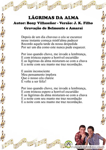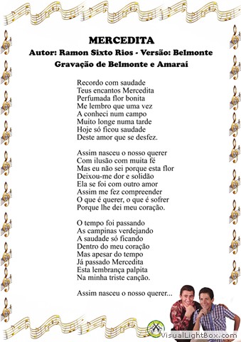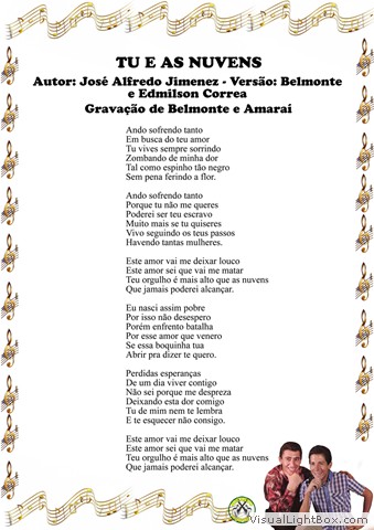 01) Lágrimas da Alma - B. Villaseñor - Versão: J. K. Filho 02) A Andorinha (La Golondrina) - Narciso Serradell - Versão: Biá e João Borges 03) Tu e as Nuvens - José Alfredo Giménez - Versão: Belmonte e Edmilson Correia 04) Eu Te Amarei Por Toda Vida - C. Sanchez - Versão: Miltinho 05) Desventura - Zacarias Mourão, Biguá e Zé do Rancho 06) Sei que Te Perdi - J. Bragato, E. Garcia, N. F. Bonfim e Maurício Cardozo Ocampo 07) Saudade da Minha Terra - Goiá e Belmonte 08) Entre Lágrimas - Bolinha e Nenete 09) Terra Querida - Nenete e Francisco Lacerda 10) Pombinha Mensageira - Belmonte e Junqueira 11) Morena Cheirosa - Nenete e Dorinho 12) Desde que Te Vi - Luis Bahamonde de Alves - Versão: Belmonte
