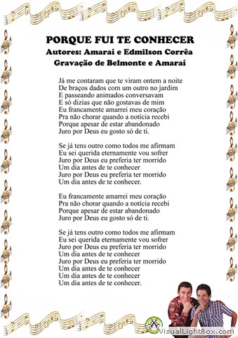 Belmonte e Amaraí gravaram mais 5 LP's, tendo sido "Porque Fui Te Conhecer" o último disco de carreira, lançado pouquíssimos dias depois do acidente que vitimou Belmonte em 09 de setembro de 1972. Neste último LP, saíram apenas 11 músicas, o que era pouco comum na época, já que a grande maioria dos LP's tinham 12 músicas, sendo 6 de cada lado. Acredita-se que a música que faltou tenha sido por causa do falecimento repentino do Belmonte antes da conclusão da gravação do disco, apesar de que, segundo Amaraí, todas as músicas programadas para o disco haviam sido gravadas.