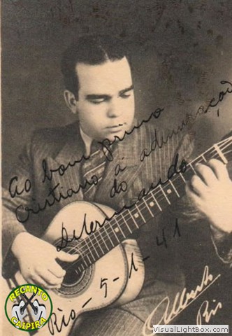 Violonista e compositor nascido em 22 de setembro de 1916 em Guaratinguetá/SP e falecido em 2 de janeiro de 1977, no Rio de Janeiro/RJ. Dilermando dos Santos Reis começou a estudar violão com o pai, o violonista Francisco Reis, ainda na infância. Em 1931, aos 15 anos de idade, Dilermando já era conhecido como o melhor violonista de Guaratinguetá. Neste mesmo ano, assistindo a um concerto do violonista Levino da Conceição, que se apresentava na cidade, tornou-se seu aluno e seu acompanhador, seguindo-o em suas excursões. Em 1933 chegou ao Rio de Janeiro, em companhia de Levino, ao desembar na Central, tomaram o bonde com destino à Lapa à procura do violonista João Pernambuco" (amigo de Levino). O violonista residia num quarto de uma república na Praça dos Governadores (posteriormente Praça João Pessoa) localizada no cruzamento da Av. Mem de Sá com a Rua Gomes Freire). Passaram o resto do dia (e a noite) com João Pernambuco, entre conversas e música. Em 1934, Levino a pretexto de ir a Campos, deixou pagos 15 dias de hotel para o jovem violonista e nunca mais voltou. Sozinho na cidade, Dilermando procurou auxílio com João Pernambuco, que o acolheu. Em fins da década de 30, envolveu-se num caso amoroso com Celeste, companheira de seu ex-professor Levino Conceição. O casal passou a residir na Rua Visconde de Niterói, próximo ao Morro de Mangueira. Viveram juntos por toda a vida. Um dos mais importantes violonistas brasileiros, atuou como instrumentista, professor de violão, compositor, arranjador, tendo deixado uma obra vultuosa, versátil, composta de guarânias, boleros, toadas, maxixes, sambas-canção e principalmente de valsas e choros. Iniciou sua vida profissional aos 18 anos de idade. Segundo seu relato ao Jornal do Brasil, naquela época as lojas de instrumentos musicais mantinham professores de música que ajudavam a aumentar a clientela. Deu aulas numa loja na rua Buenos Aires, depois foi apresentado por um aluno ao dono da loja "Ao Bandolim de Ouro". Em 1935, passou a lecionar na loja "A Guitarra de Prata". Por essa época, Dilermando começou a acompanhar calouros na Rádio Guanabara, trabalho esporádico e sem contrato. No intervalo de uma dessas apresentações, Dilermando como costumava fazer, solava uma valsa "Gota de Lágrima", de Mozart Bicalho quando o radialista Renato Murce ouviu e gostou. Levou o violonista para a Rádio Transmissora e deu-lhe um programa de solos de violão, para experimentar o resultado. O programa foi um sucesso e iniciava-se neste momento uma carreira de violonista destinado à fama. Como já naquela época não era possível sobreviver apenas de solos de violão, continuou como acompanhador em regionais, como faziam todos os grandes violonistas da época (Garoto, Laurindo de Almeida, etc). Em 1940, transferiu-se para a Rádio Clube do Brasil. Nesse mesmo ano, formou uma orquestra de violões (composta de 10 violonistas), à qual acredita-se que tenha sido uma das primeiras do gênero. Atuou com êxito na Rádio Clube e também Cassino da Urca. Em 1941, gravou seu primeiro disco pela Colúmbia, onde constavam a valsa "Noite de Lua" e o choro "Magoado", provavelmente o mais conhecido e mais executado de seus choros. Em 1944, fez um segundo disco também com composições suas. Em 1946, mais dois discos num dos quais registrou pela primeira vez músicas de outro compositor. Encerrou a década de 1940, com um total de nove discos gravados. A década de 50, representou a consolidação e grande avanço na carreira do artista. Em 1956, assinou contrato com a Rádio Nacional, com o programa "Sua Majestade, o Violão", nos primeiros anos apresentado por Oswaldo Sargentelli e posteriormente por César Ladeira. O programa tinha por prefixo a mazurca "Adelita", de Francisco Tárrega e se manteve no ar até 1969. Na década de 60, gravou vários LPs. Em 1960, lançou o disco "Melodias da Alvorada", em homenagem à nova capital, com arranjos e regência de Radamés Gnattali. De 1941 a 1962, lançou 34 discos 78 rpm (68 músicas). Dentre essas, 43 de sua autoria. Com o início da era do LP, Dilermando passou a gravar perfazendo um total de 35 LPs gravados em sua carreira. Os LPs, mostraram uma nova faceta do violonista: o acompanhamento de cantores com apenas um violão, que neste caso se caracterizava pela apresentação da canção, seguida de um solo de Dilermando, voltando ao acompanhamento para terminar. Nesse estilo de acompanhar, Dilermando esteve ao lado de José Mojica quando este veio ao Brasil e fez um total de sete LPs com o cantor Francisco Petrônio. Em 1970, Radamés Gnattali dedicou ao violonista o Concerto nº1, gravado nesse mesmo ano. Como professor, ensinou a grandes violonistas dentre os quais Darci Vilaverde e Bola Sete. Foi também professor de Maristela Kubitscheck, filha do presidente Juscelino, de quem foi grande amigo e parceiro de serenatas. Essa amizade, aliás, valeu a Dilermando a nomeação para um cargo público, o que muito lhe aliviou as dificuldades financeiras. Em 1972, gravou o LP "Dilermando Reis interpreta Pixinguinha", e em 1975 lançou "O Violão Brasileiro de Dilermando Reis" ambos pela Continental. Em alguns de seus LPs foi acompanhado pelos grandes violonistas Horondino Silva, o Dino Sete Cordas e em outros por Jaime Florence, o Meira. Além de sua vasta obra, Dilermando deixou inúmeros arranjos editados. Na década de 90, o violonista Genésio Nogueira iniciou uma coleção de LPs e CDs dedicados à obra do compositor. |