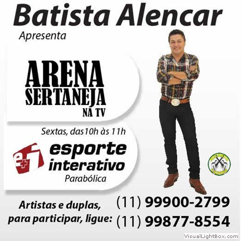 Sob o comando de Batista Alencar o programa musical, tem como objetivo apresentar artistas sertanejos, levar entretenimento e boa música ao público e ao telespectador. Voltado aos amantes da música sertaneja. O Arena Sertaneja na TV é uma grande oportunidade de exposição para novos artistas mostrarem o seu trabalho, também disponibilizar espaço a empresários anunciar e divulgar suas marcas, produtos e empresas, por um valor justo, abaixo do mercado de propaganda.